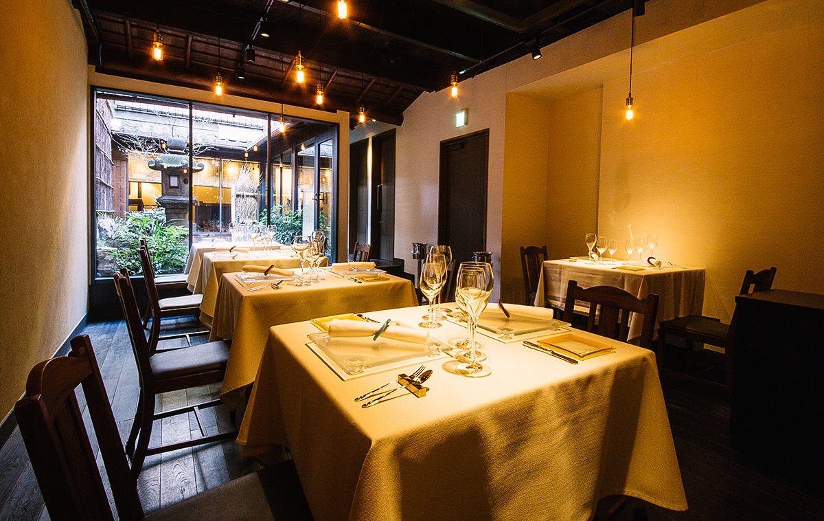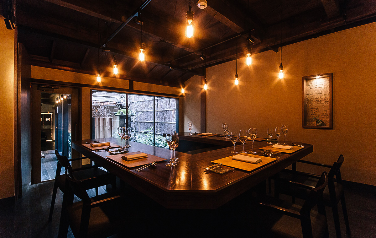 テーブル8席、 個室1室(7席)を設けております。京の風情が佇む箱庭を眺めながら、特別な方と、特別な時間を特別な料理と共にゆったりとくつろぎながらお楽しみください。